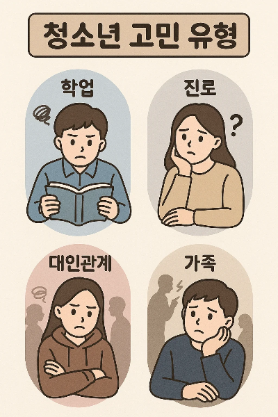 가장 흔한 청소년 고민 중 하나는 단연 성적과 입시 스트레스입니다. “이번 시험 망치면 어떡하지?”, “내가 원하는 대학 갈 수 있을까?” 이러한 압박은 부모의 기대, 학교 분위기, 또래 경쟁 등에서 비롯되며, 자칫 우울감으로 이어질 수 있습니다. 📌 부모 TIP: 결과보다는 노력 과정을 인정해주세요. “너 참 성실했구나” 한 마디가 큰 힘이 됩니다.