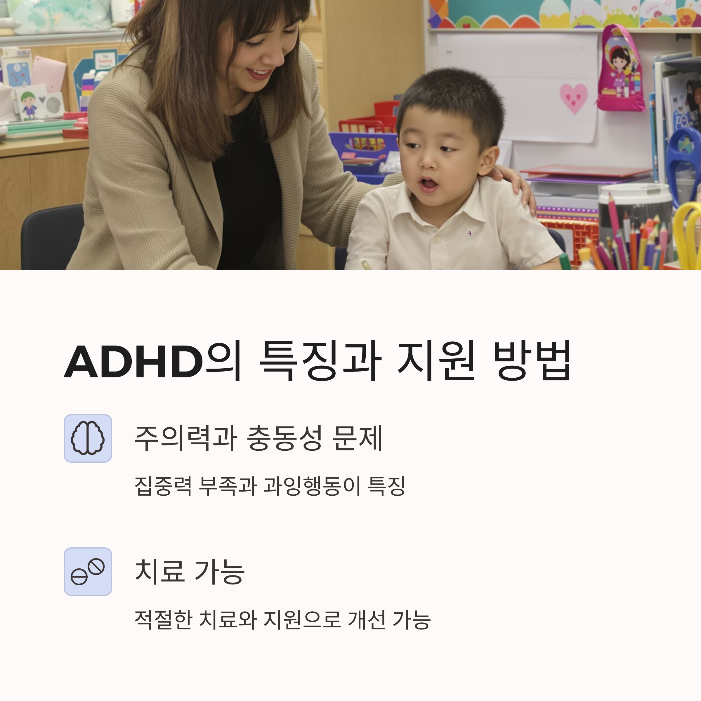주의력, 충동성, 과잉행동이 특징이며 치료가 가능해요.