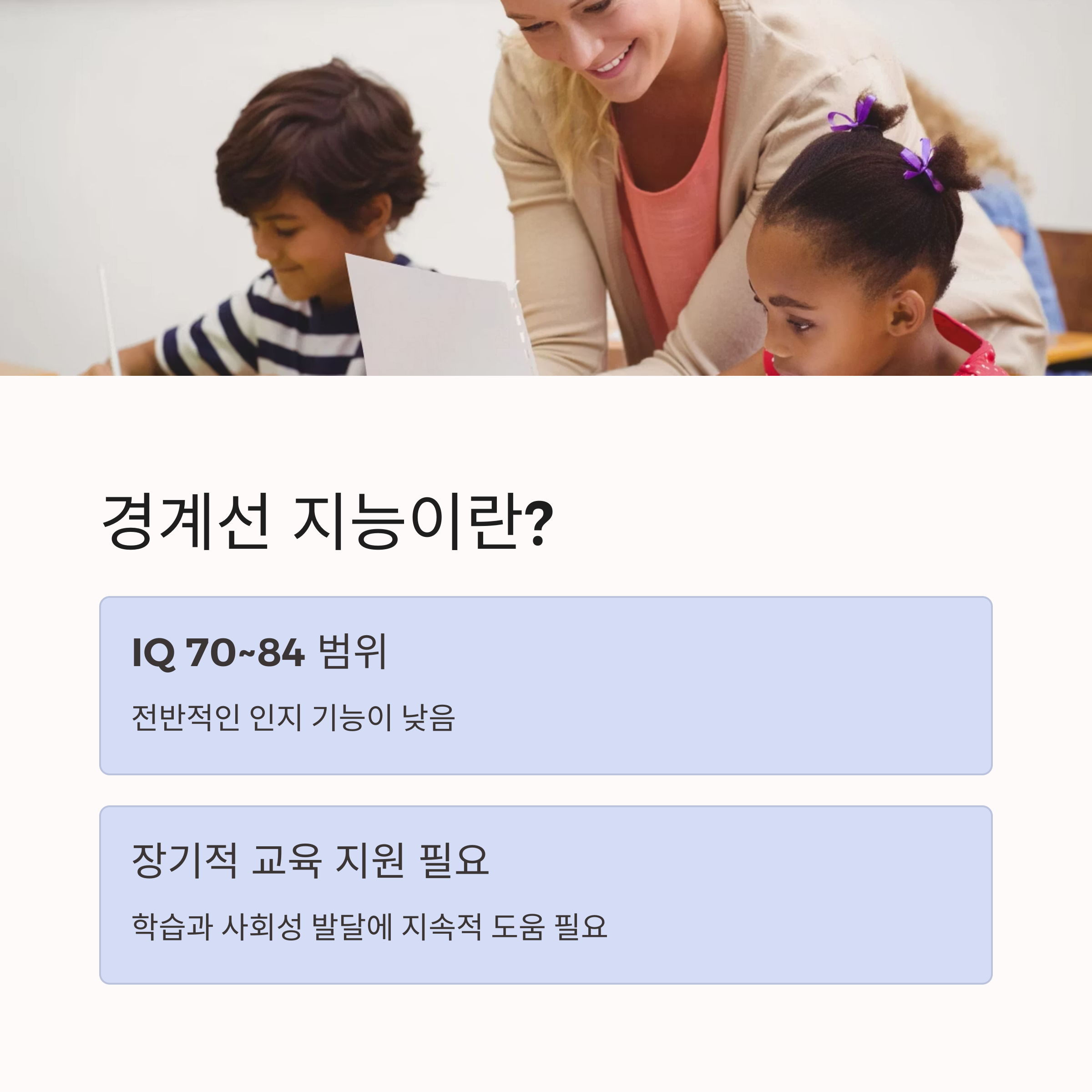 IQ 70~84로 지능이 평균보다 낮지만 정식 장애는 아니에요.